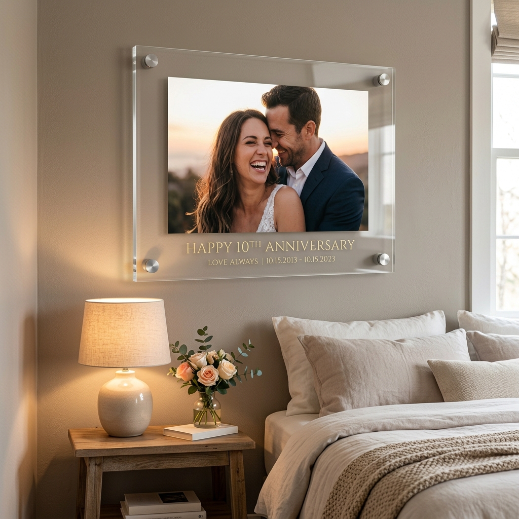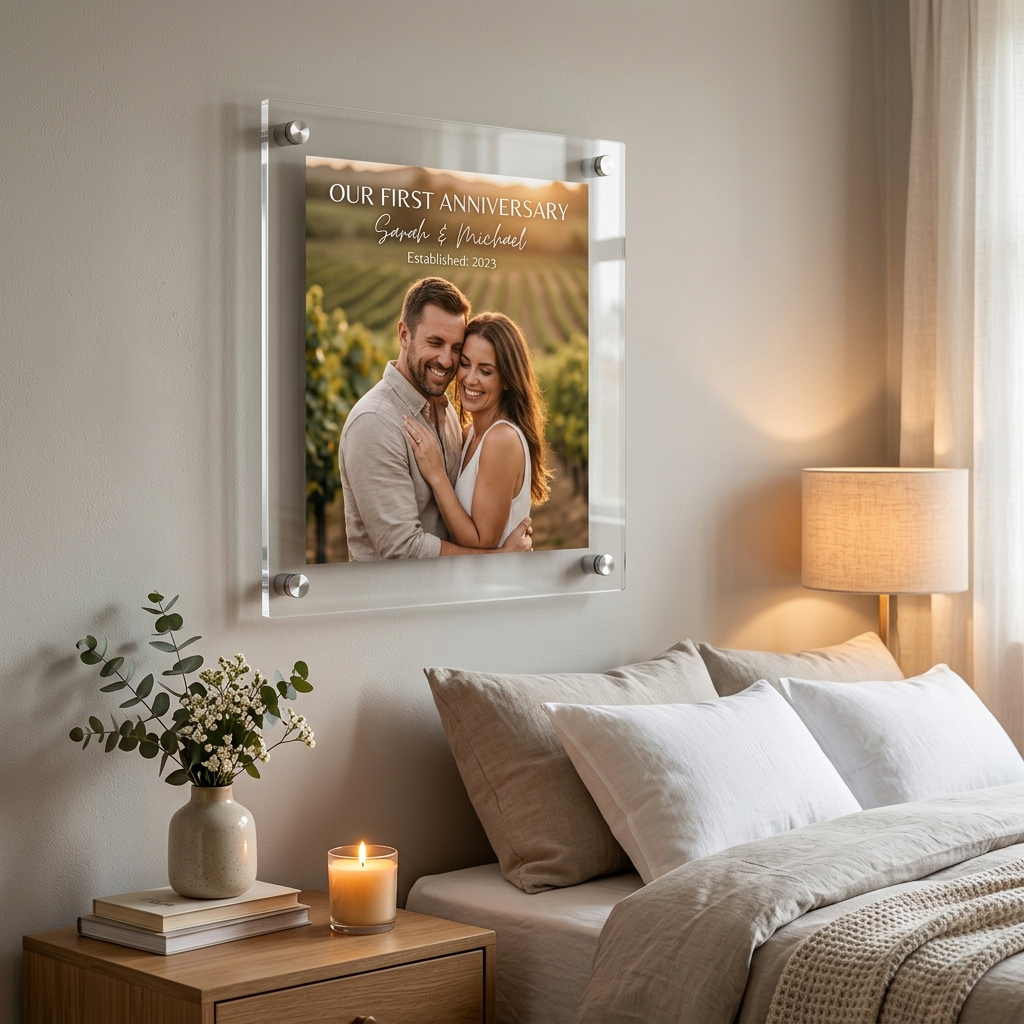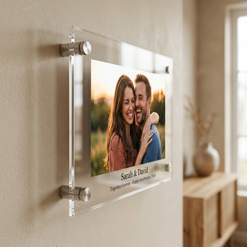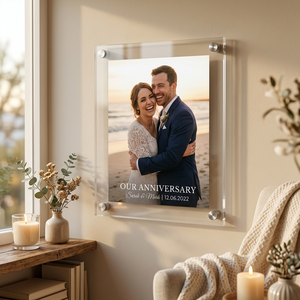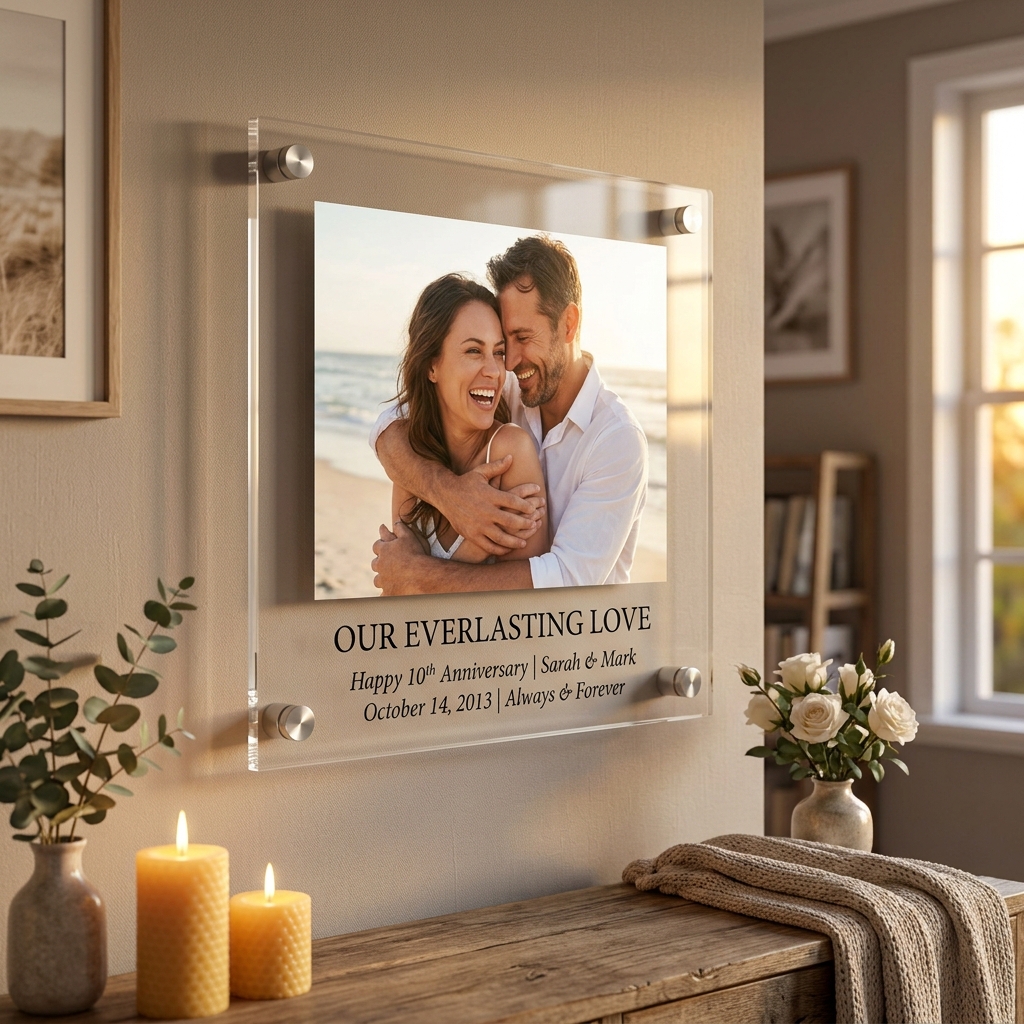 Mark a special milestone with a custom anniversary acrylic photo frame designed to turn your favorite memory into a premium keepsake. With vibrant UV printing and a sleek frameless finish, it is a beautiful way to celebrate love.