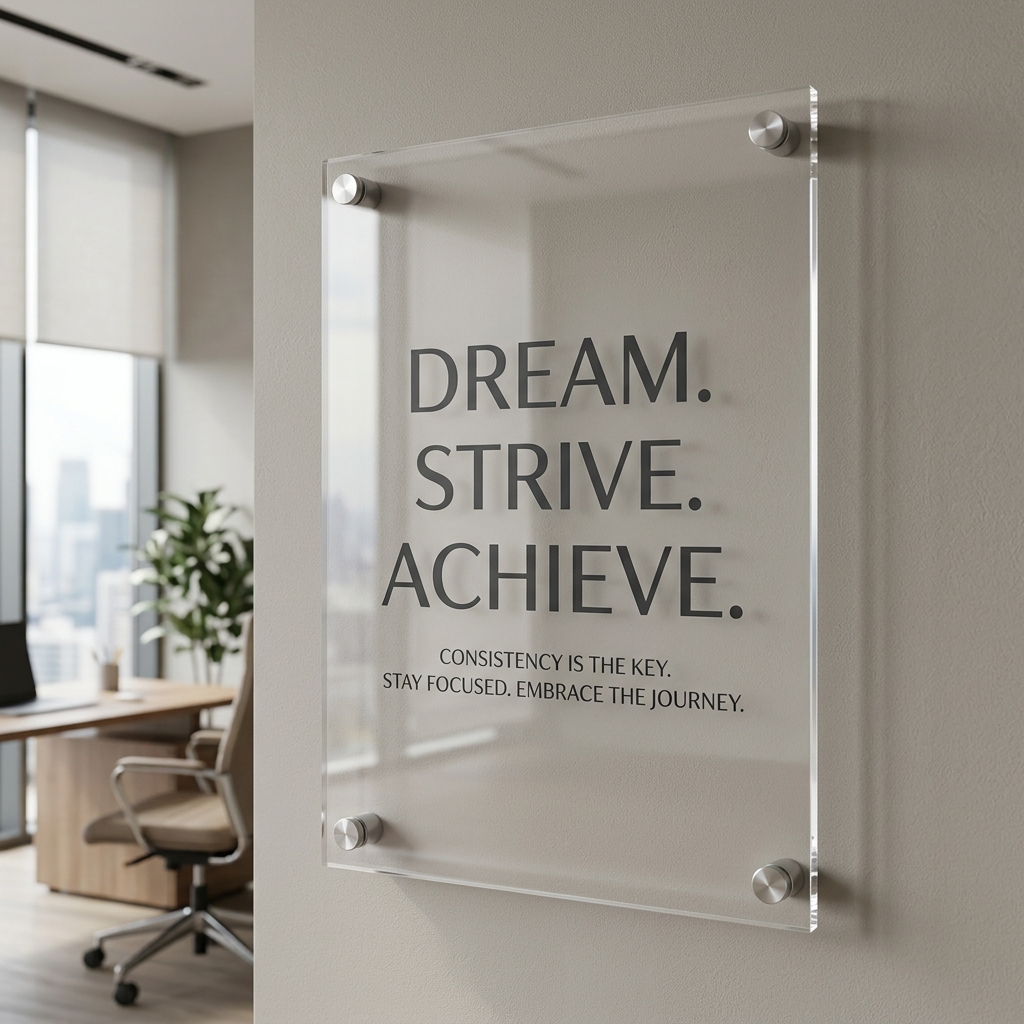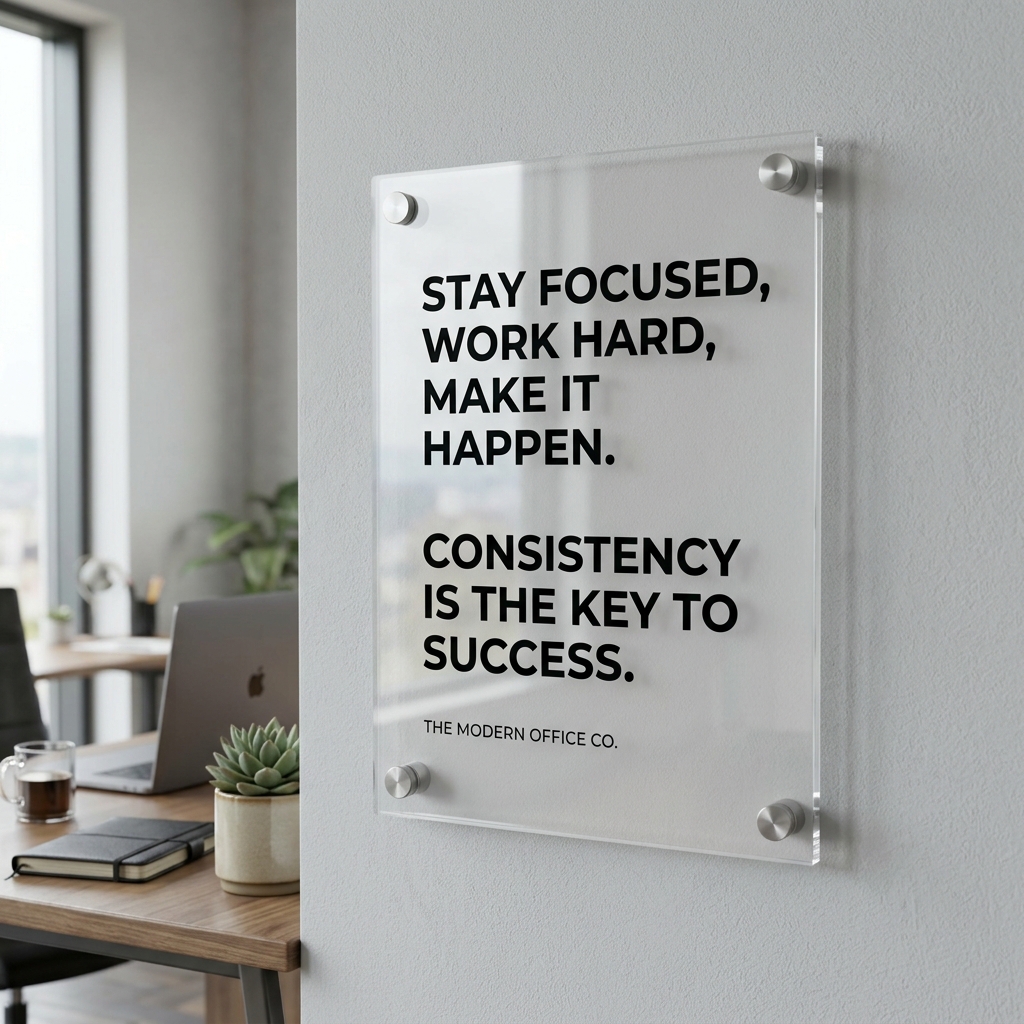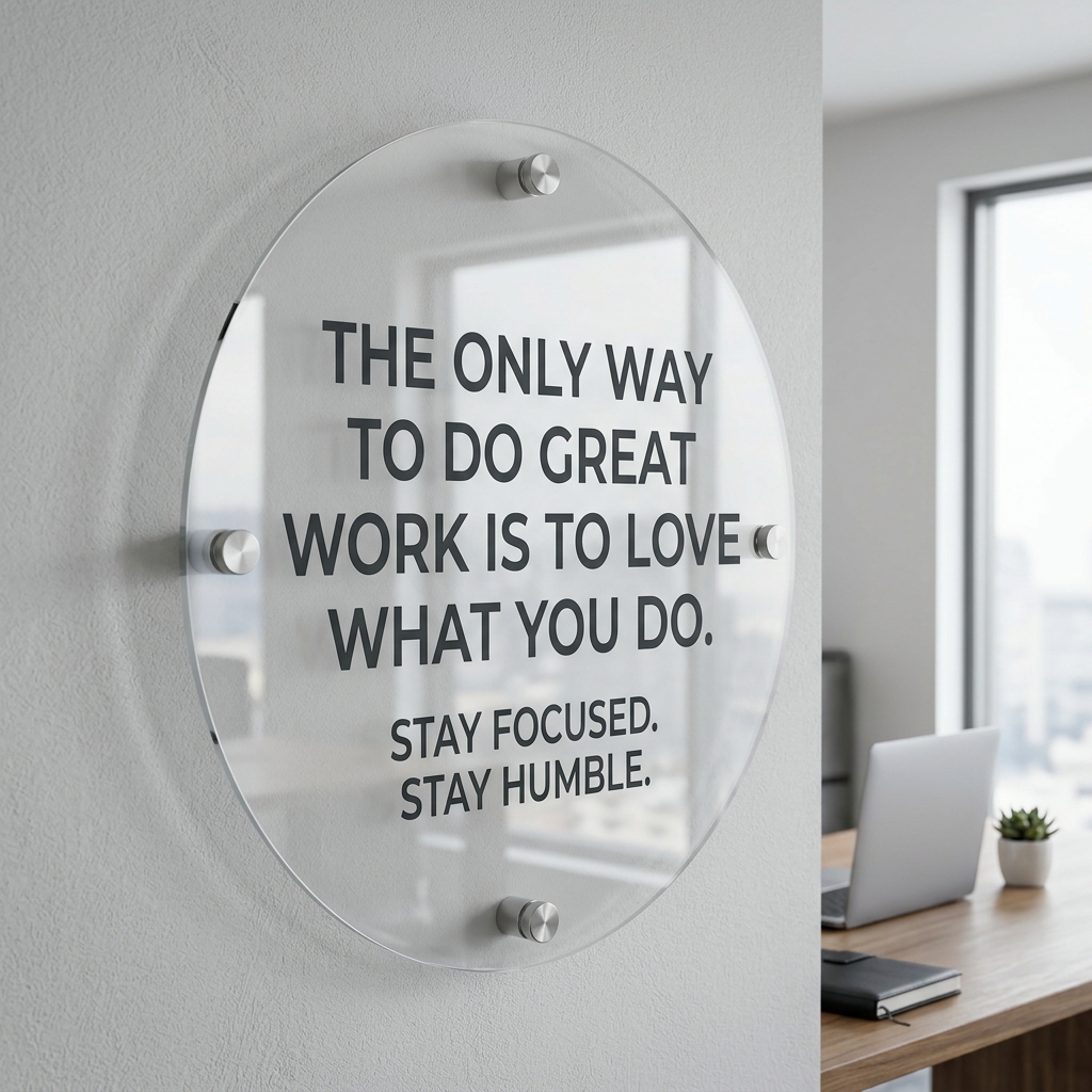 Add personality and motivation to your workspace with a premium office quote acrylic display. Designed for modern office décor, this piece combines clean design with sharp UV printing to create a bold visual statement.