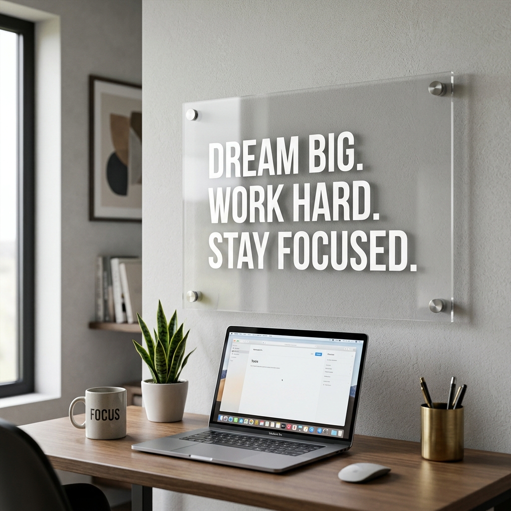Create an environment that supports discipline and performance with productivity-themed acrylic wall art. Designed for professionals, entrepreneurs, and students, this piece adds energy and intention to your workspace.
